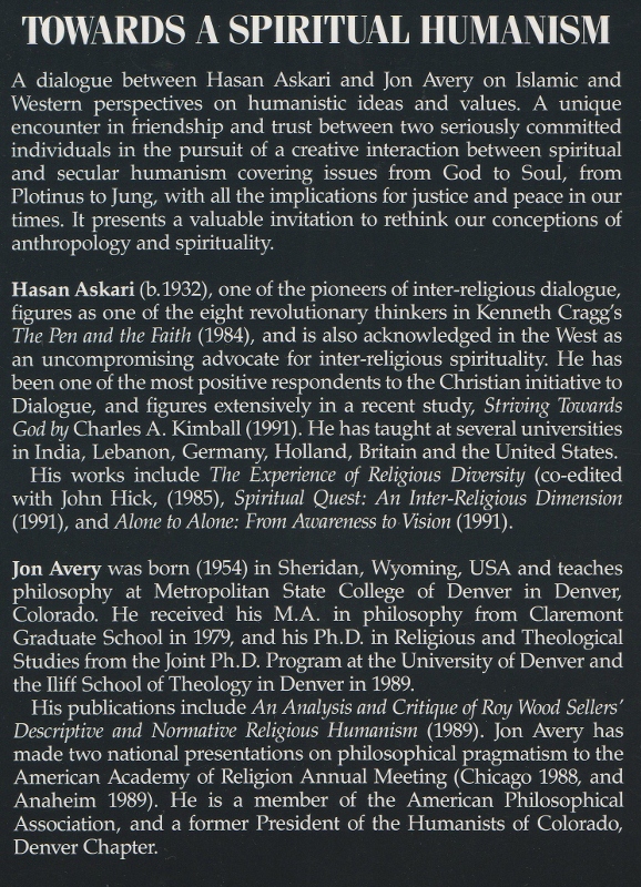 A very unusual book, first published in 1991, brings us a series of discussions between the celebrated esoteric Muslim scholar Hasan Askari and the American humanist Jon Avery.